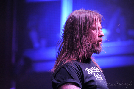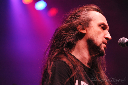 Up next was Massachusetts band Shadows Fall. Occasionally blurring the line between metalcore, thrash, and melodic death (sometimes all in the same song), they got the crowd going thanks to singer Brian Fair. While guitarists Jon Donais and Matt Bachand were precise, yet fairly sedate, Brian Fair seemed the polar opposite. It is quite possible that Fair was a vortex, sucking in all the energy around him and unleashing it in a fury through his body, voice, and his almost-ankle-length-dreadlocks.