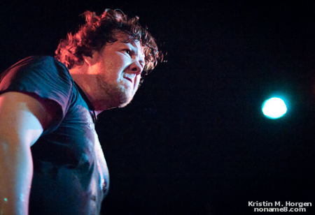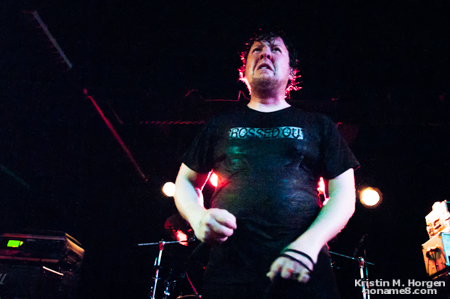My personal favorites were “Eve” and “The Bug” because guest star Kat Katz, of Agoraphobic Nosebleed (a band whose album Altered States of America features 100 songs in just under 22 minutes, making Pig Destroyer sound long-winded in comparison), joined Hayes on both of them, and their back and forth was irresistible, like a lovers’ spat set to music. I also enjoyed Richard Johnson’s (also of Agoraphobic Nosebleed) cameo on “The Underground Man,” a 32-second stop-and-start heartstopper that highlighted Jarvis’ ability to make his drums sound like a machine gun. I also particularly enjoyed “Thumbsucker,” “Permanent Funeral,” “The American’s Head,” “Deathtripper,” “Piss Angel,” “The Diplomat,” and “Sheet Metal Girl,” although I’ll be damned if I can tell you why, other than I wrote “great” about them in my notebook. Some things are simply impossible to put into words, such as what it felt like to get my penis pierced, and Pig Destroyer’s sheer sonic sturm und drang is one of them. All I know for sure is that the guys in Pig Destroyer play in perfect lockstep, know a thing or two about how to settle into a monstrous groove, and can–believe it or not–actually be described as funky. And one other thing; I asked a guy in the audience why he loved Pig Destroyer so much and he shouted over the noise, “Because they’re so fucking angry!” Me, I don’t think they’re angry; I think they’re just a bunch of guys who enjoy playing music that sounds like a collapsing skyscraper.