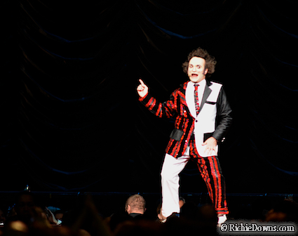 From the show’s first downbeat, Pink is launched from stage level high into the air, suspended by wires as she performs a series of trapeze-like in-air acrobatics, all while she delivers the evening’s first song, “Raise your Glass.” Fans really broke the needle off the scream-o-meter, happily singing along as Pink flew around the place and blasted real pyrotechnics between her and the gigantic video board behind her, which displayed stylish images from old ads to vampires throughout her performance. This tour really gives new meaning to the term “elaborate stage productions.” Every aspect of of it was very well-thought-out and superbly entertaining.