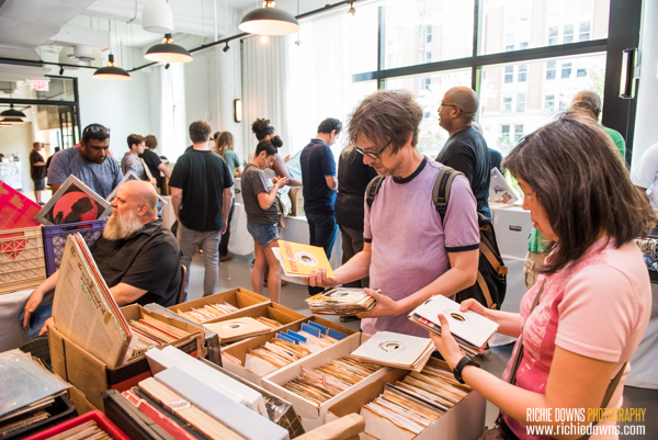PHOTOS: RICHIE DOWNS | After a decade in regular rotation, the enthusiasm for the DC Record Fair appears to not be waning one bit as its Summer 2019 edition exhibited. At a brand new location, the Eaton Workshop in downtown Washington, DC, a line formed early on Sunday on June 30 and kept apace all day long. Perhaps it was the free entry? Who knows.