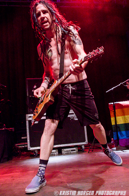 Must’ve been the former because by the time they took the stage at the Fillmore, he looked ready to rock, wearing a sexy above-the-knee leather skirt. Opening with “60%” and “Dinosaurs Will Die,” the energy on stage ramped up. Melvin launched into the air numerous times. The crowd ate it up and the pit refreshed itself for a raucous night.