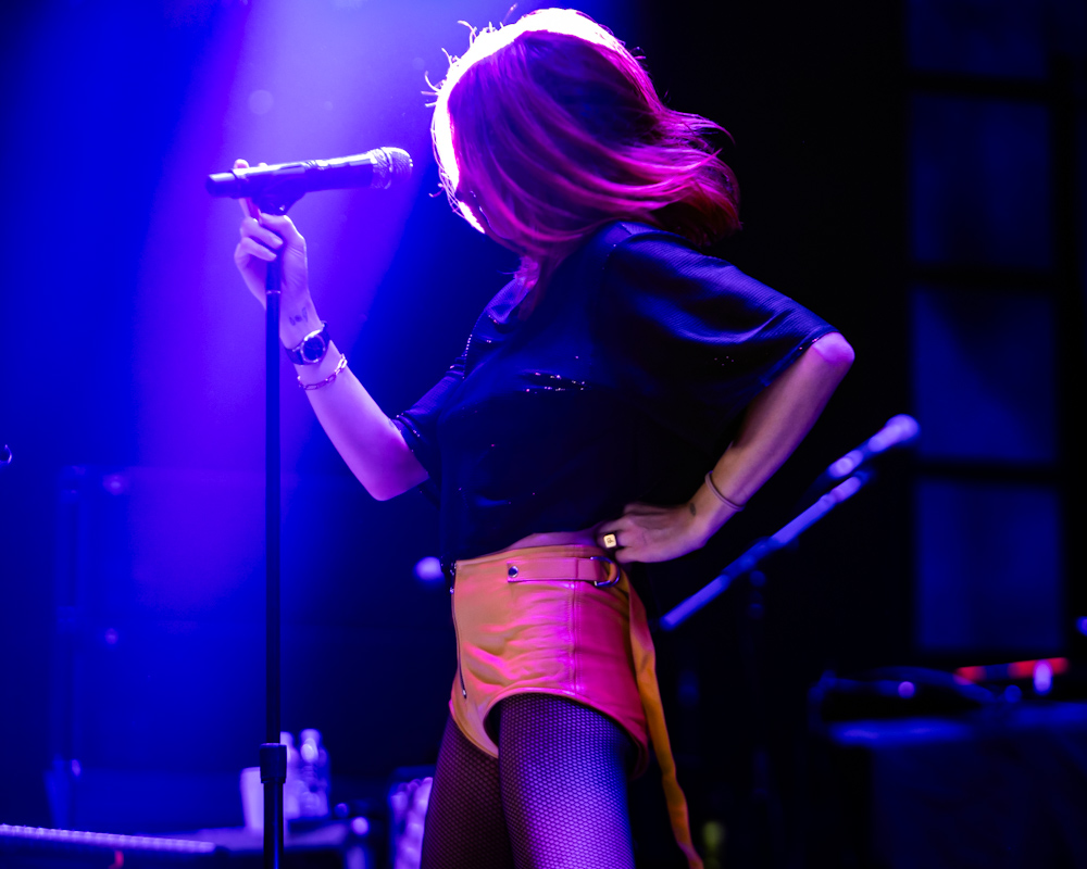 After a quick turnover, Phantogram, took the stage. The “street beat, psych pop” duo of multi-instrumentalists and vocalists Sarah Bartel and Josh Carter formed in 2007 in Greenwich, NY. The friends met as children and, around 2007, reunited and formed Phantogram. Over the course of seven songs, the crowd got acquainted with Phantogram’s swirling guitars, spacey keyboards, echoes, and airy vocals. The setlist was pulled from across the band’s discography but was weighted toward songs from Three and Voices, including bangers “Howling at the Moon” and “You Don’t Get Me High Anymore.”