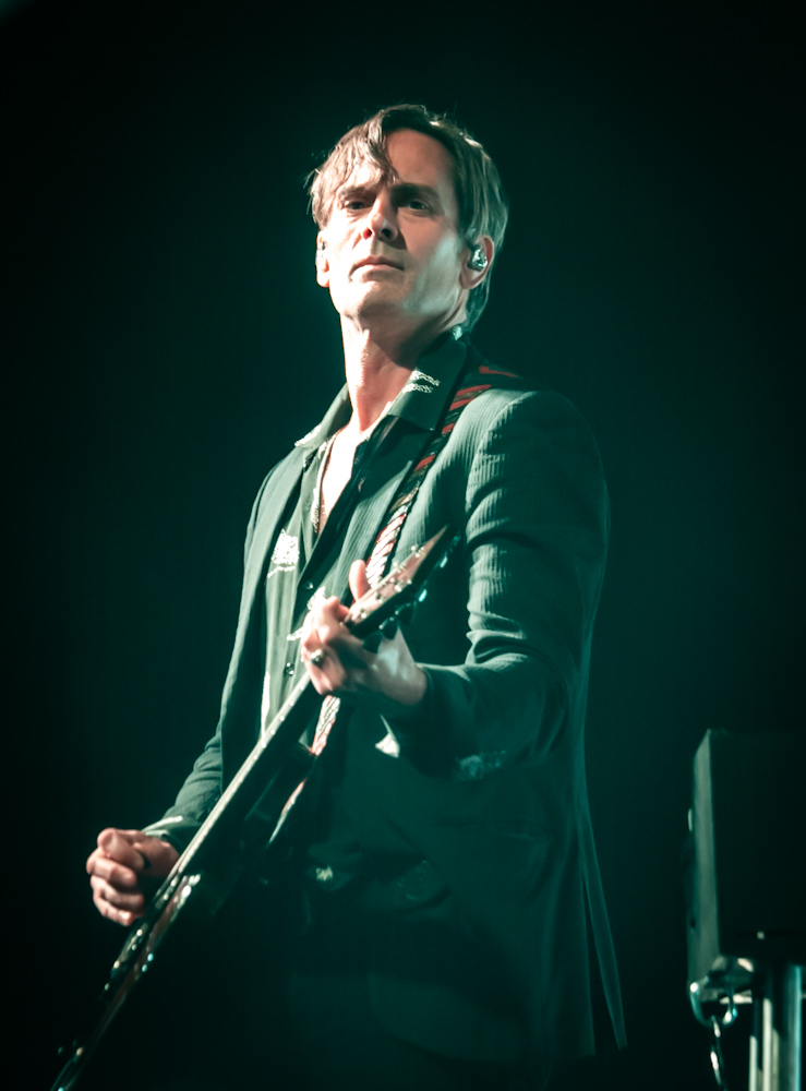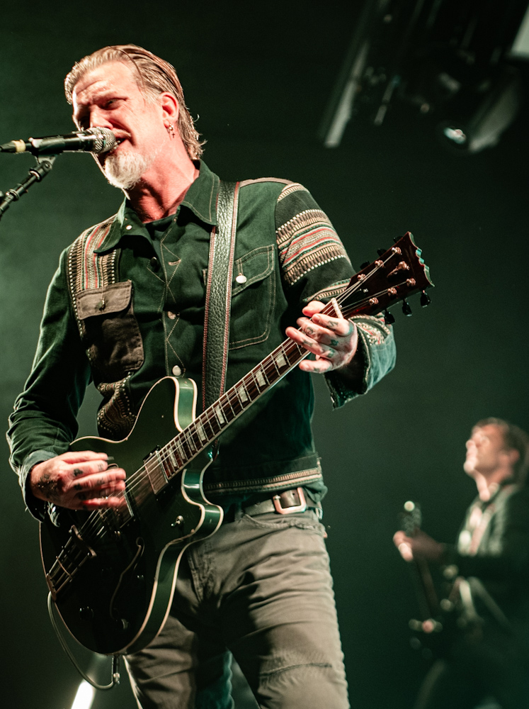 Other songs remained, such as “Make It Wit Chu,” getting the collective horniness of the crowd up while the charismatic Homme admitted he was singing to the ladies in the audience. Four songs from In Times New Roman slid easily into place among the older material. Homme admitted to the crowd he was “sick as a dog” that night and by the time the night wound down, he had the crowd singing most of “No One Knows.” They did not mind one bit.