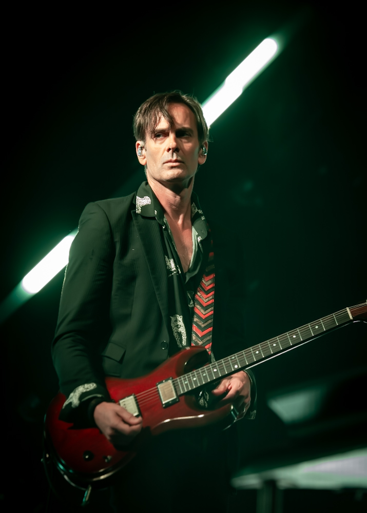 On The End is Nero tour, the connection to QOTSA is Troy Van Leeuwen, who produced The Armed’s newest album, Perfect Saviors, slated to be released at the end of August. Taking the stage at 7pm, The Armed blazed through the roughly half hour set—eight songs, split right in half between their 2021 release, Ultrapop, and Perfect Saviors. It was hard to know where to look as vocalist Tony Wolski’s tornadic presence fueled the punk rock energy.