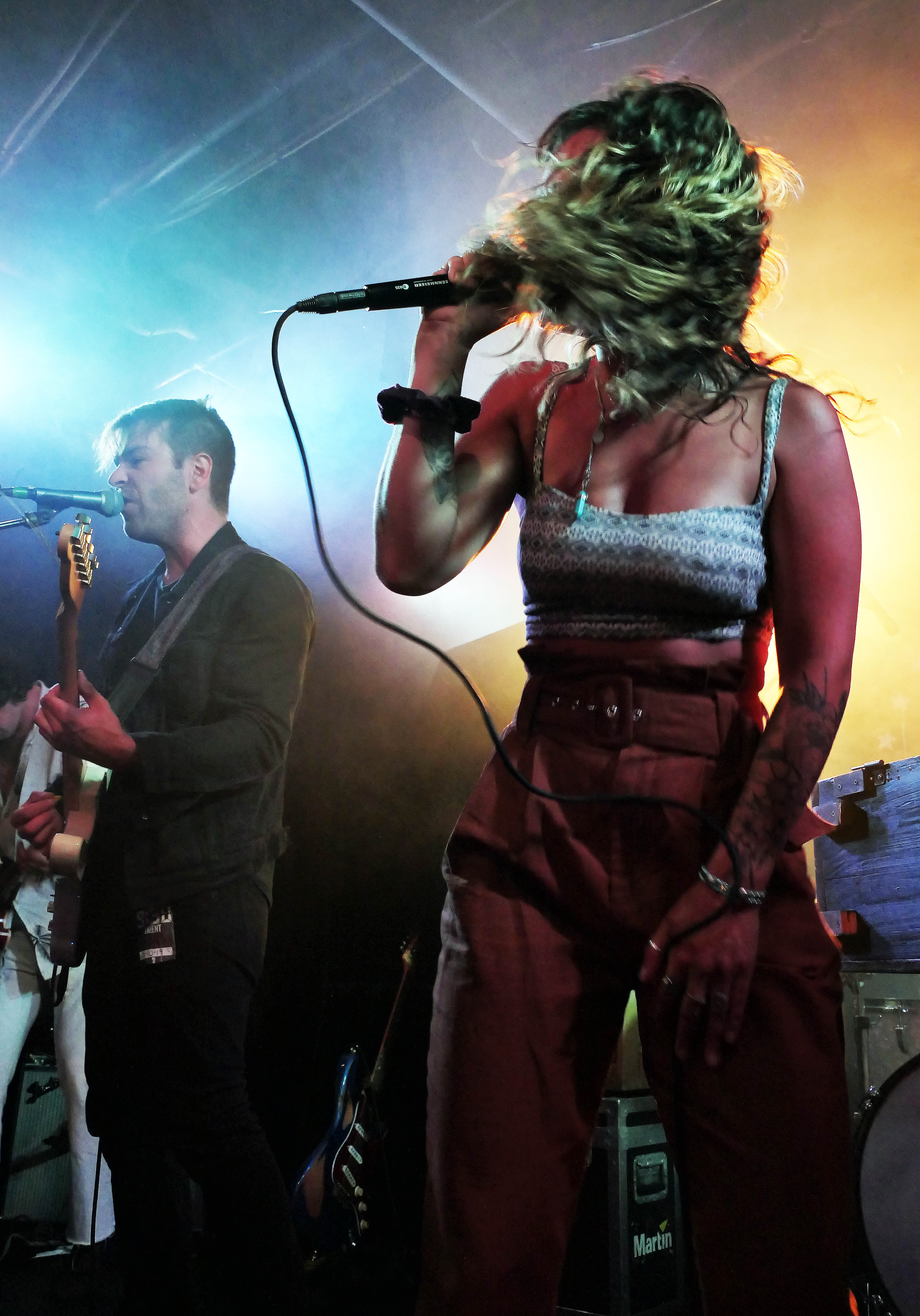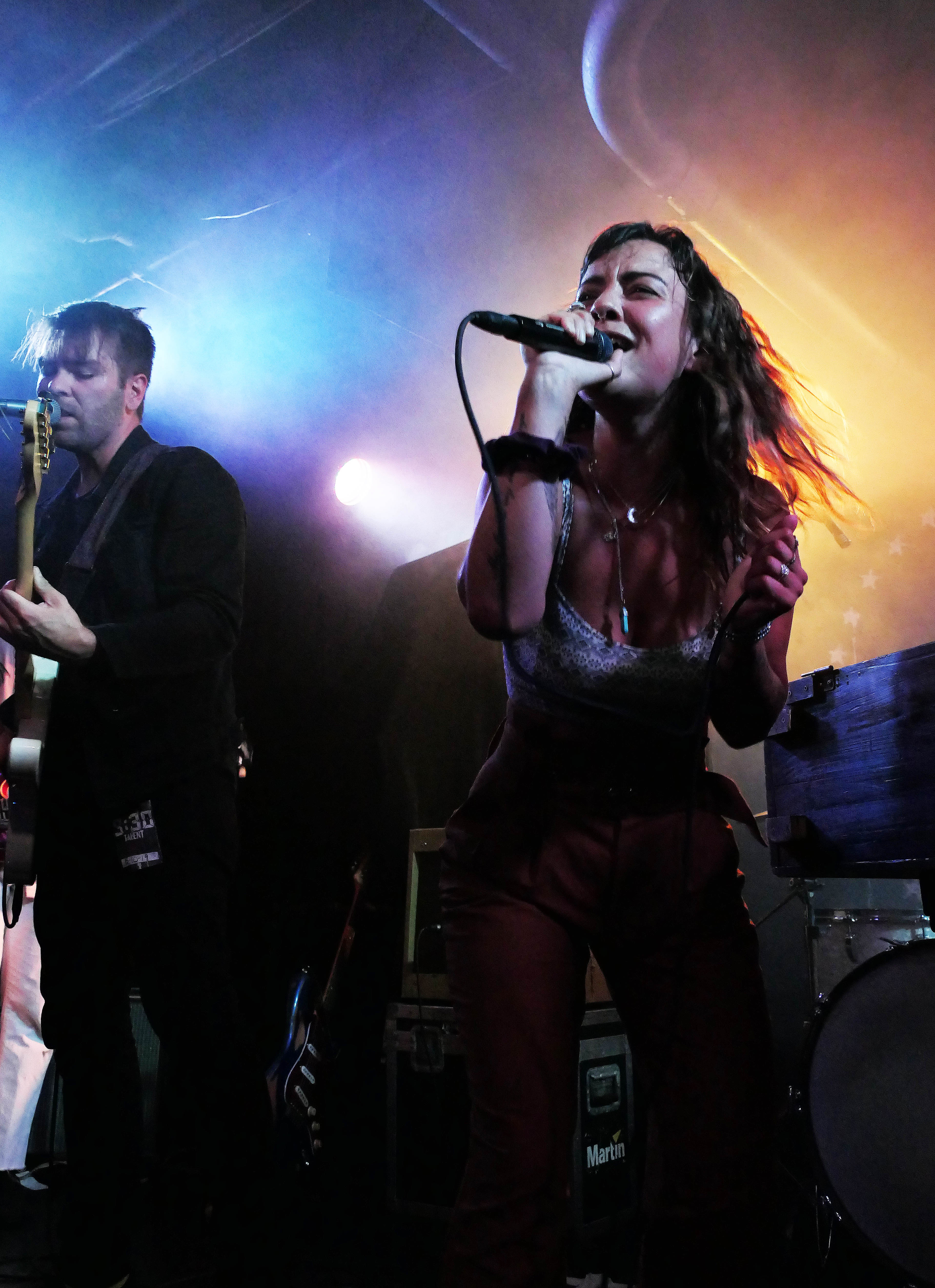 The set’s closer, “Fool’s Gold”, featured a Reignwolf trademark: playing from the audience. Drummer Braley, perched at a full drum kit parked in the audience, pounded away while Cook played guitar standing on the bass drum. At their side was Kardash, who tapped away a beat on Cook’s guitar with a drumstick. Surrounding them were the fans, chanting along with the chorus.