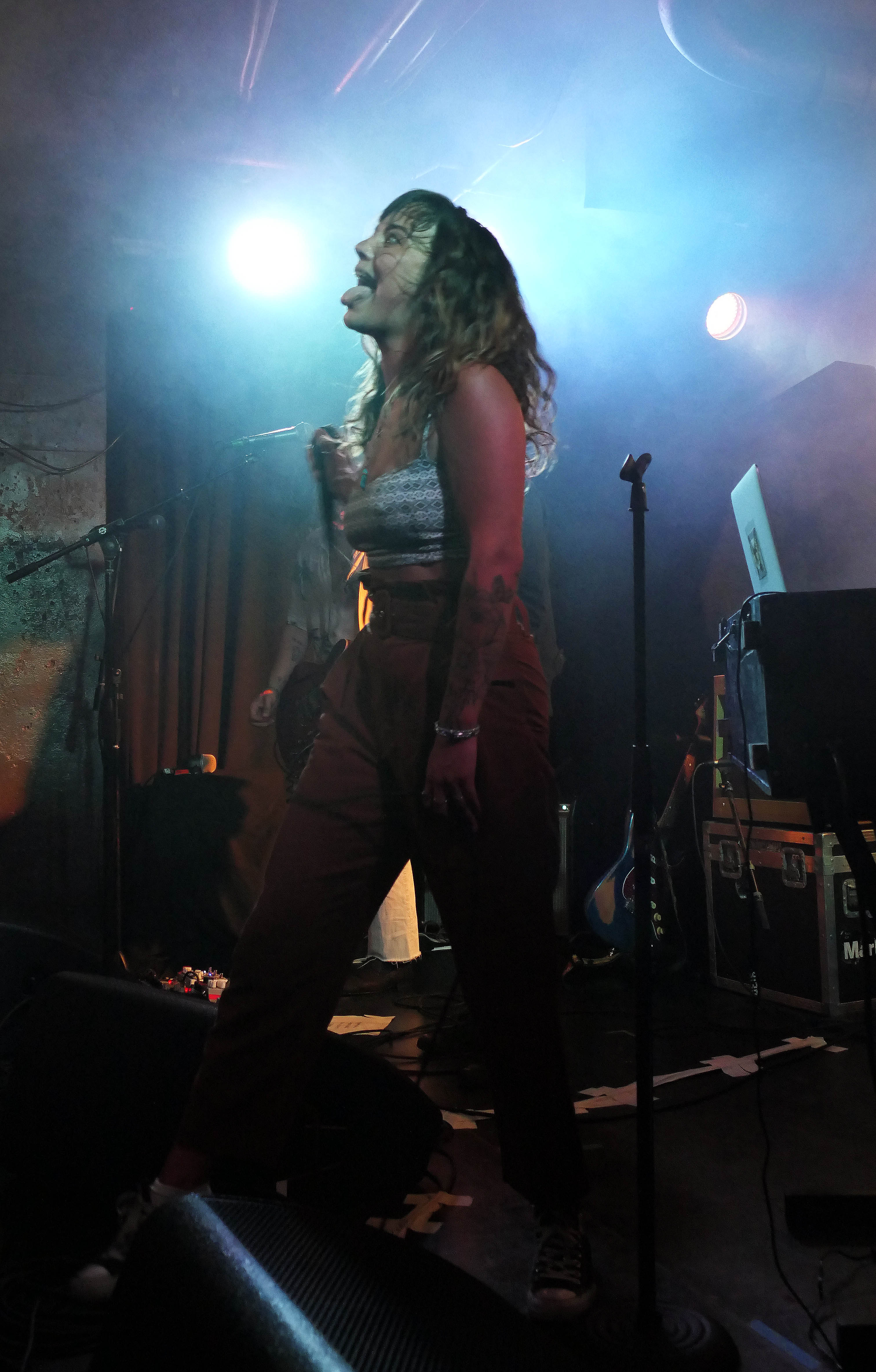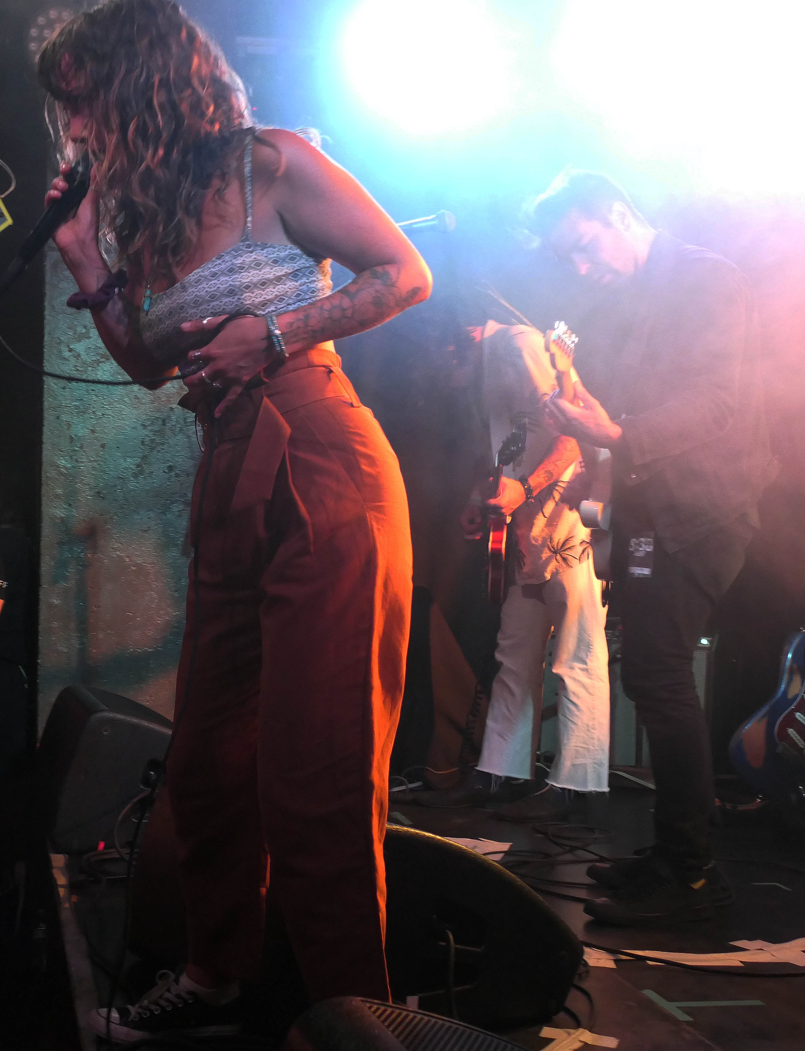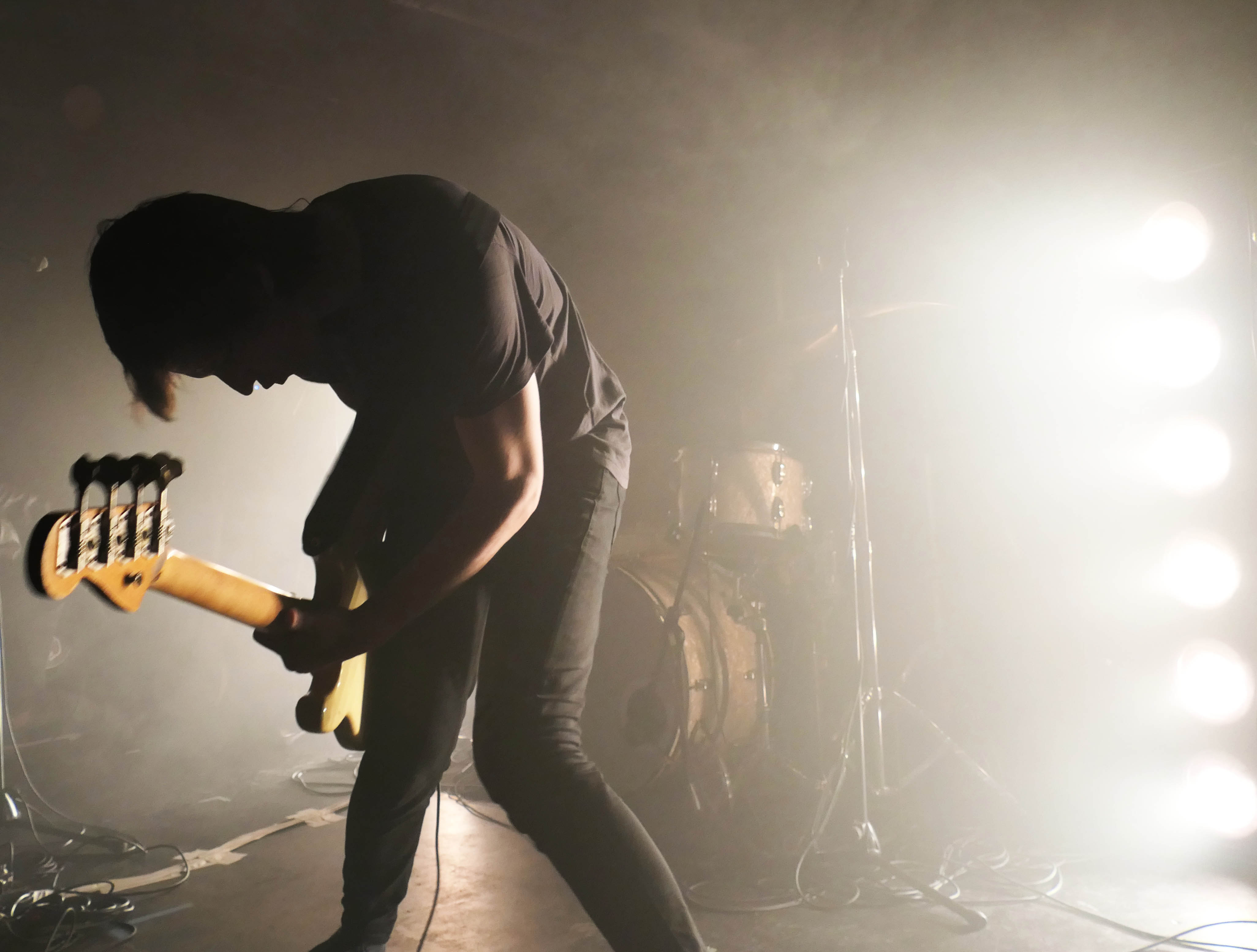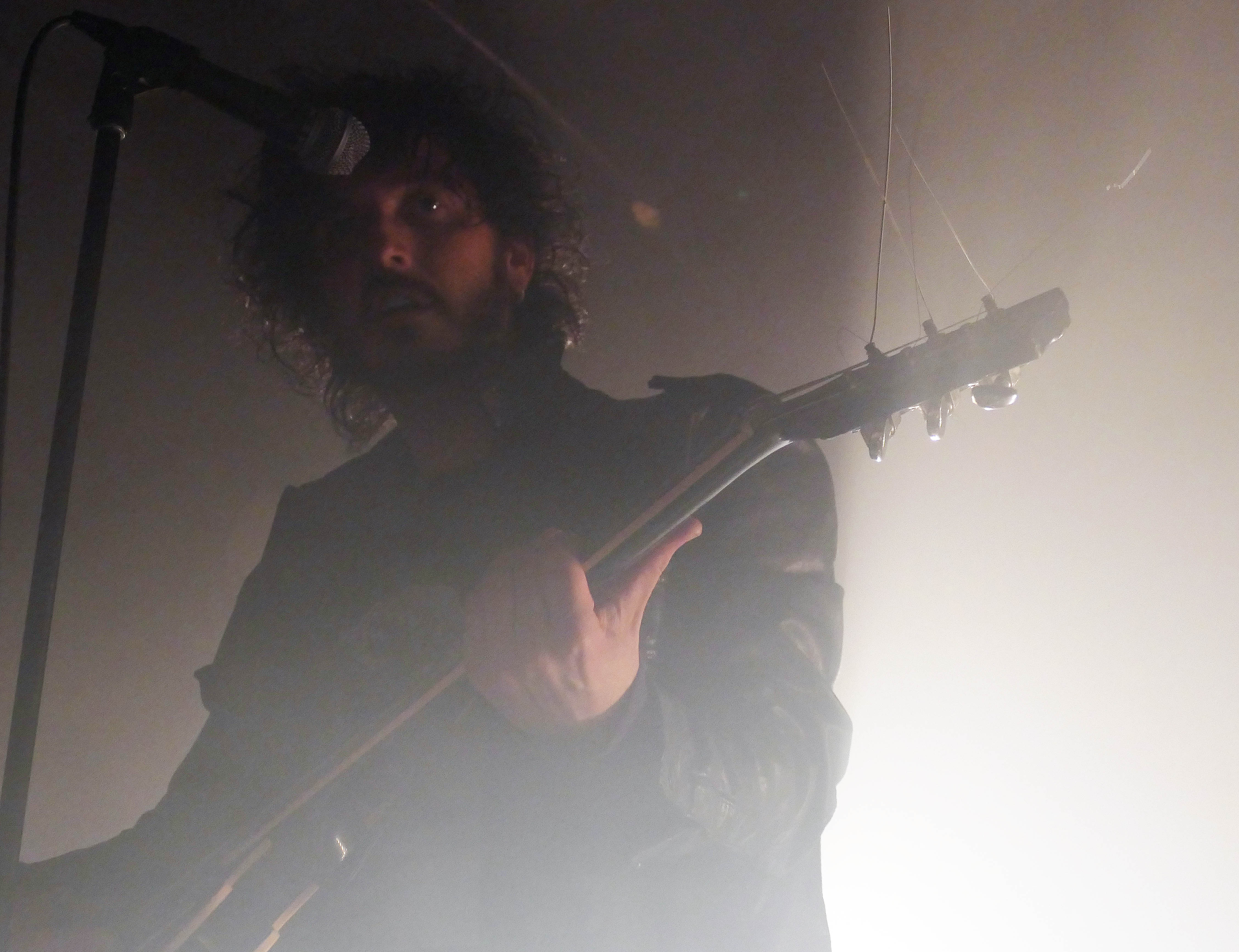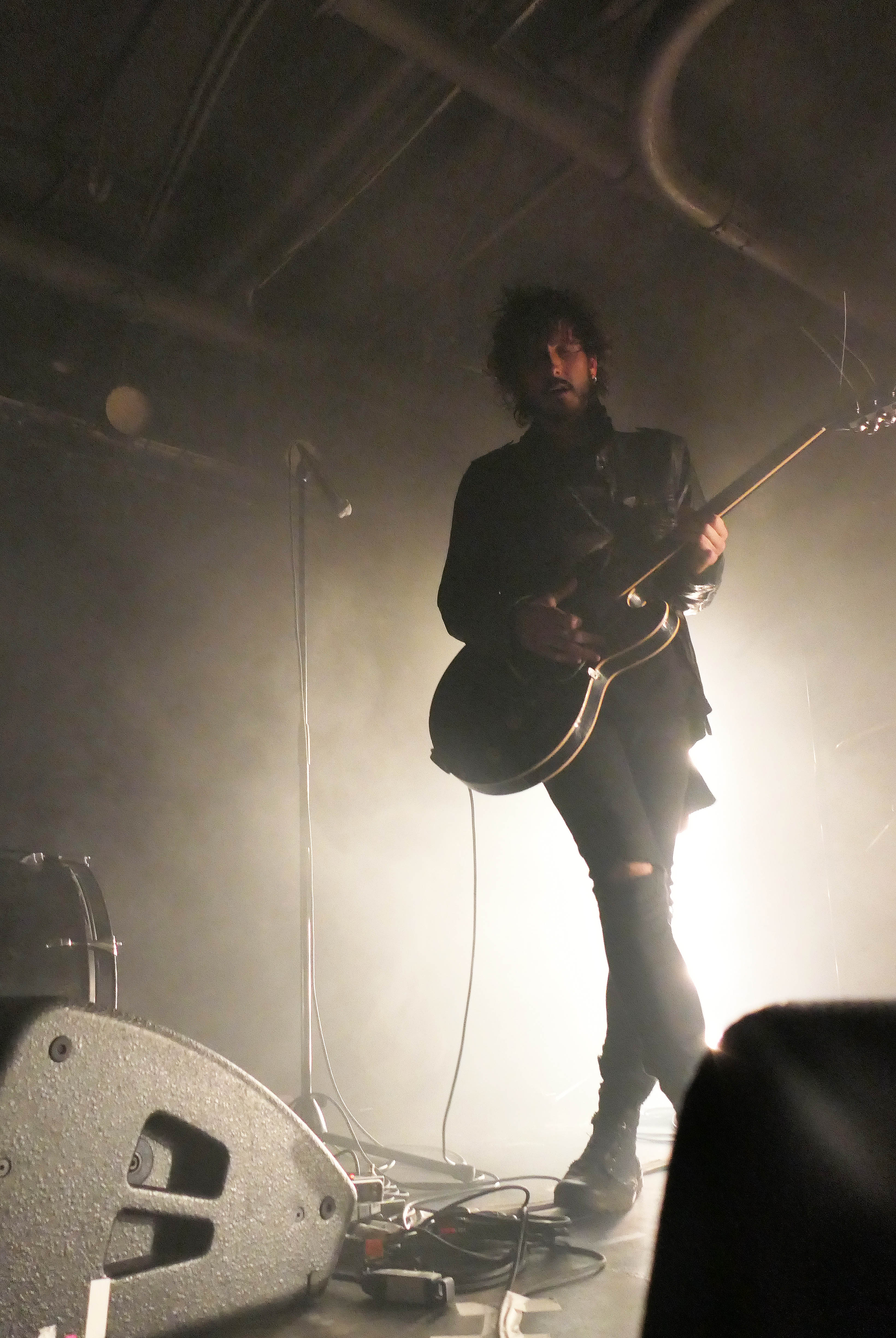 This mysterious air was underscored in the darkened, underground room at U Street Music Hall. The band played shrouded in smoke and back-lit by bright white lights, allowing those in attendance to see Cook and Karsdash in silhouette, and Braley not at all. No matter, as songs like the ferocious “Wanna Don’t Wanna” and Gary Clark Jr-ish “Black and Red” were loud and energetic as the blazing fires of Hell. During those moments when Cook emerged from the smoke and could be seen, he revealed a look that calls to mind 1970s Bruce Springsteen or even a black leather-clad Cat Stevens, while the band’s sound could be compared to Jack White, the aforementioned Gary Clark Jr, or the barely contained insanity of Black Pistol Fire.