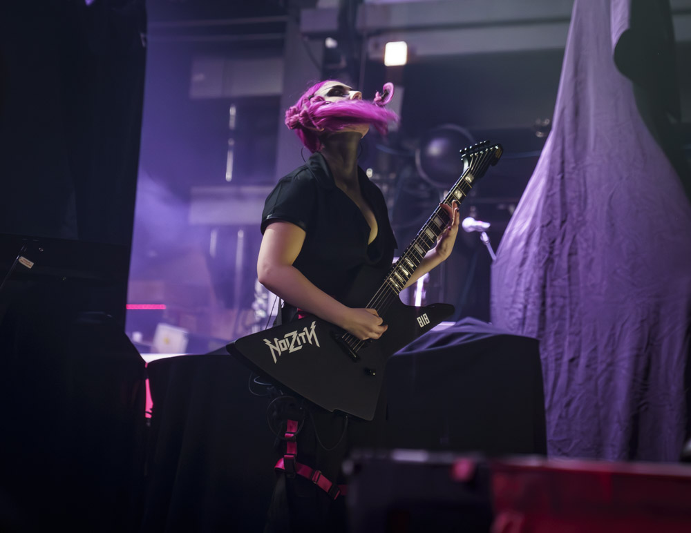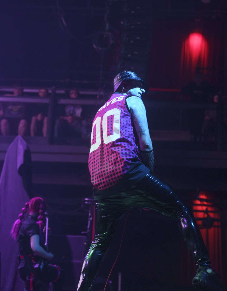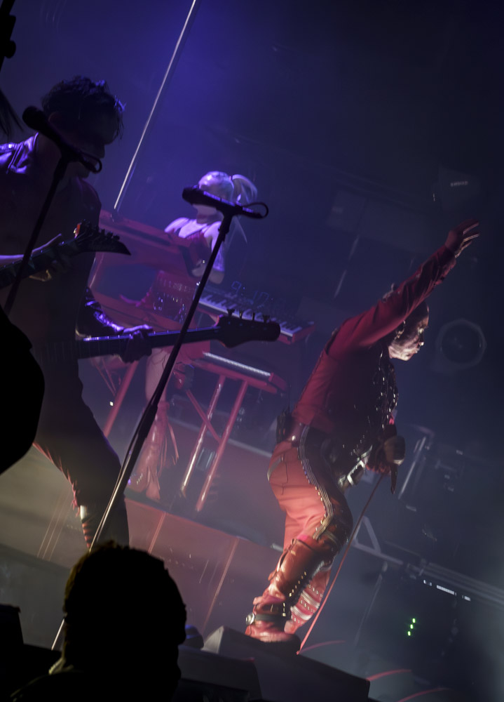 The night got started a full 30 minutes ahead of the venue’s listed showtime when Austrian-American industrial pop band Aesthetic Perfection took the stage. Comprised of Daniel Graves on vocals, Brooke C on drums, and NOIZITH on guitar and keyboard, the band quickly got the night started, spending 30 minutes getting everyone’s energies up.