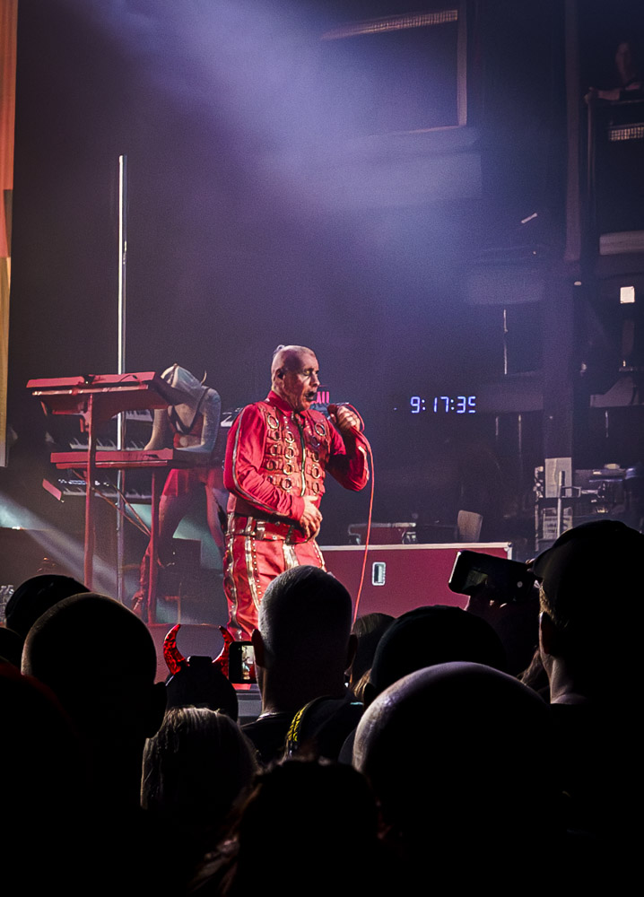 When one covers a gig, the evening begins at a venue’s box office, where the ticket and photo pass are picked up and any other important information is relayed. Wednesday night at the Fillmore Silver Spring, when I arrived to cover Till Lindemann on his current headlining tour, this additional information came in the form of signage posted at the box office, and the doors to the venue. It said, “Please be advised that this performance will involve exposure to certain foods containing the following ingredients, and potential allergens…” and listed the usual roundup, including shellfish. It was a reminder of what I already knew to be true—this show would be a visceral and wholly bonkers experience.