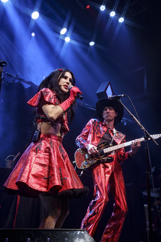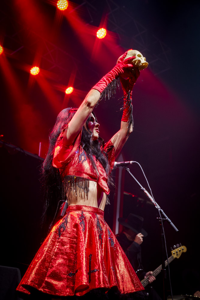 After a mere 15-minute turnover, Twin Temple took over the stage and treated the crowd to their unique brand of “Satanic doo-wop.” The husband-and-wife team of vocalist Alexandra James guitarist Zachary James’ traffic in vintage rock and roll with a Satanic twist. Kitted out in ’50s/’60s rock and roll style, they started the set with the presentation of skulls and unholy water. The songs are catchy and fun and takes on Satan, the occult, and loose morals, without taking any of it too seriously.