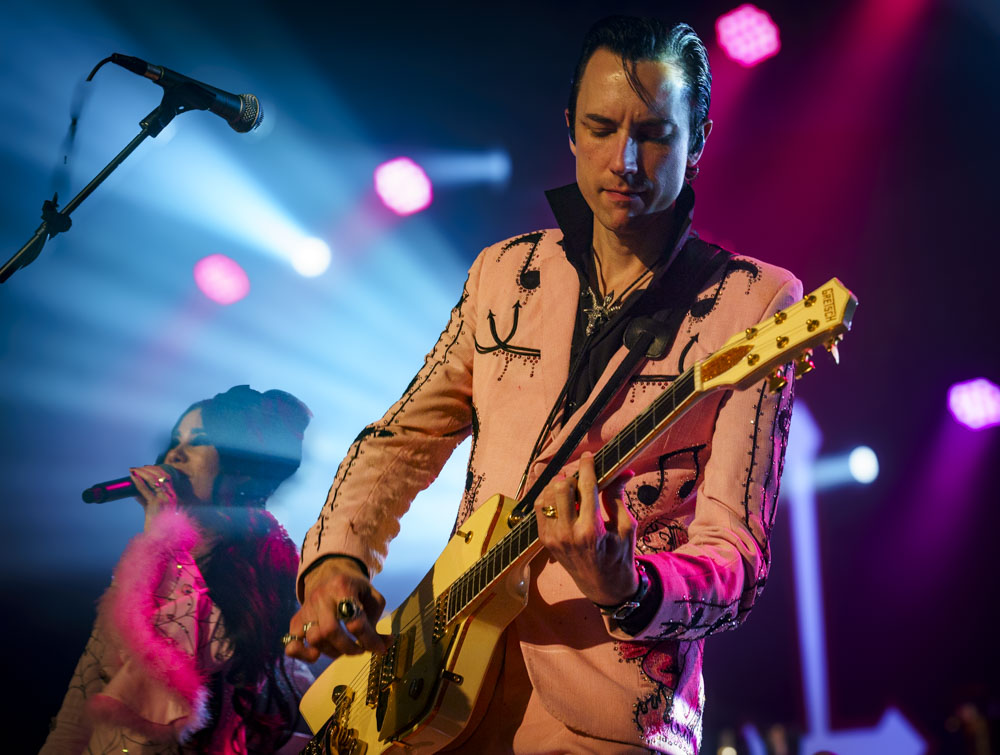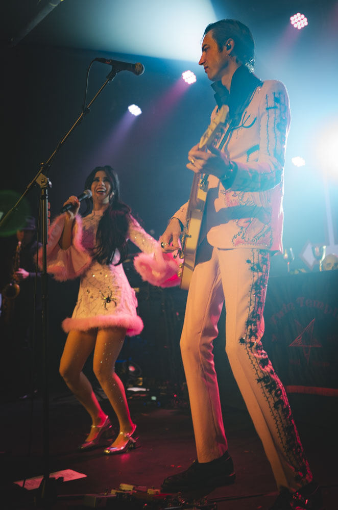 Zachary’s retro guitar is legit and they have an incredible backing band, including a glorious saxophonist. The custom stage costumes—elaborately embroidered pink numbers—are fabulous. Twin Temple doesn’t come across as hollow either—these are musicians with a deep respect for early rock and roll and have the musical chops to bring it into the 21st century. They just do the twist with Lucifer.