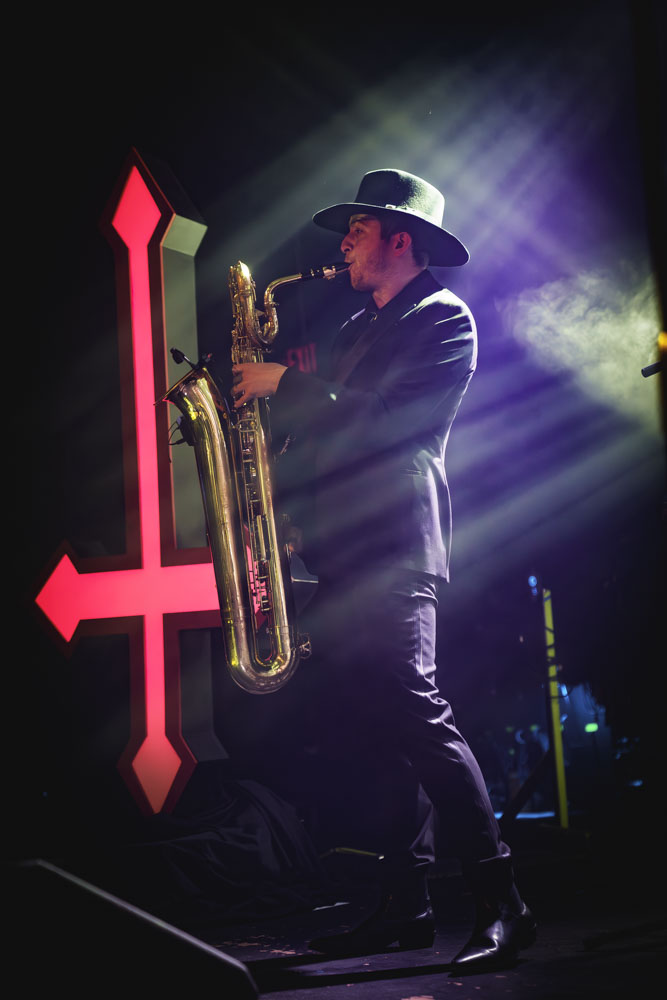 From bluesman Robert Johnson to hip shaking Elvis Presley to metal bands like Black Sabbath and Behemoth, music has always been accused of being in cahoots with the Devil. LA’s Twin Temple turns up the dial by overtly being Satanists, ones who craft fine, 1950s style rock and roll, woven with darkness. Their sophomore album, the “brutally blasphemous” God is Dead, was released in 2023. The God is Dead tour brought the Devil to Baltimore Soundstage last Sunday night.