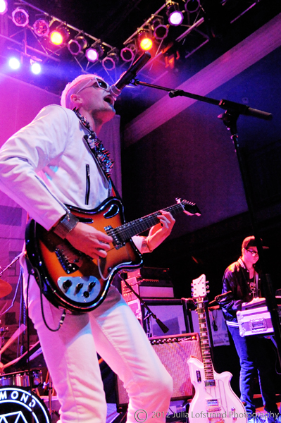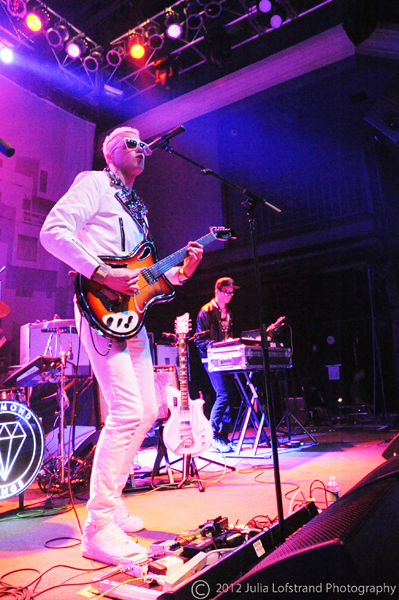 Walking on stage in white Nikes, white jeans, a white motorcycle jacket with a silver sequined lapel, and a bleached pompadour, John O’Regan, the man behind Diamond Rings, brought to mind a new age David Bowie. Performing a mix of tracks off of his debut electro-pop album Special Affections and the upcoming Free Dimensional, Diamond Rings is both an incredibly entertaining performer and strong musician with a strong, deep baritone.