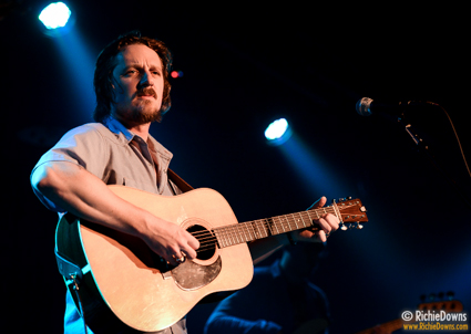 The evening kicked off with Baltimore native Cris Jacobs. Just one man and his guitar, Cris intricately picked his way through “The Devil or Jesse James” to start the set. As his voice rose and fell, it seemed to me that Cris would be at home on this stage right here, in a church, or busking on a street corner and you would get the same thing every time. To add to the well-travelled-soul vibe, he brought out a three-stringed cigar box guitar. Laid across his lap, he deftly worked the slide across the strings and provided percussion with the heel of his hand and a thimbled finger. Tacking on a wicked slide solo after “Samson and Delilah,” the crowd clapped along and hooted with enthusiasm.