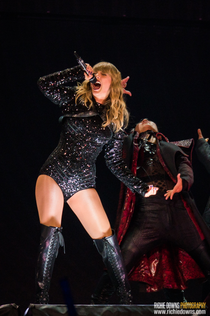 It’s never convincing that Swift, who still moves like a dream-filled teen who sings with her hairbrush in the bedroom mirror, could ever be saddled with a bad reputation (and the Joan Jett song of that title which heralded the start of her set—a song she’d be lucky to emulate some day). She tries to come off as tough, though, in her boots and lipstick and bare-thigh hip swaying.