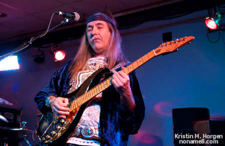 At 9:30, Uli Jon Roth and his band took the stage, with Uli wearing his trademark bandanna and turquoise baubles and sporting his signature “Sky Guitar,” a 30-fret, 7-string work of musical art. Kicking things off with a bang, the band tore into “All Night Long” from Tokyo Tapes, and the crowd was instantly enthralled, roaring approval. Vocalist Henning Basse was stunning, belting out the notes for all they were worth.