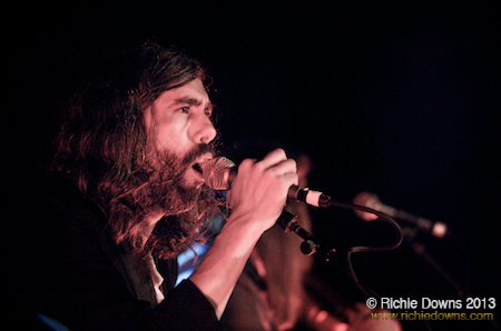 Vietnam’s set was heavy on material from an A.merican D.ream, from “Flyin,”–which I still despised live–to “No Use in Cryin’,” an uncharacteristically straightforward blues that brought to mind Plastic Ono Band era John Lennon, to the propulsive “Kitchen Kongas,” which featured some cool harmonica by Gerner and a great guitar solo by Maynard. Vietnam also played my bete noire “Blasphemy Blues,” and I’ll be damned if I didn’t wind up loving it, because I too love chaos and “Blasphemy Blues” was easily the most meandering, twisted, and generally fucked-up blues song I’ve ever heard. It didn’t hurt that Maynard literally attacked his guitar, playing a pair of really fractured-sounding solos and producing great squalls of feedback with some device he scraped across his strings.