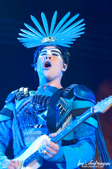 If we had done more research, we would have been prepared for a performance that would make Jim Henson cream. Basically take the theatrical ‘80s costumes of Mad Max and combine them with the theatrical dances of The Mighty Boosh, and you’ll have an idea of the level of drama EotS brought. At least four costume changes occurred, with four synchronized dancers working the electronic beats of each song with jerky arm and leg movements. They didn’t play “Walking on a Dream,” but the audience demanded they return and do so. Another costume change with frontman Luke Steele donning a massive headpiece, and EotS returned to grant everyone’s wish.