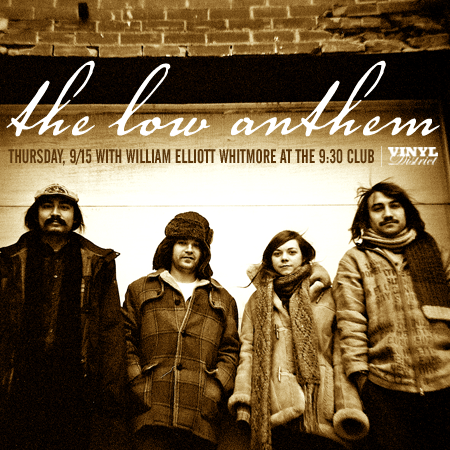 The Low Anthem is headlining the 9:30 Club next week with William Elliott Whitmore, whom I had the pleasure of seeing perform just two months ago, and if that show is any indication of this upcoming one, all of those in attendance are guaranteed to have a good time. If you wish to be a part of this folk singin’, music box playin’, whiskey drinkin’ good time, enter here to win a pair of tickets to the show.