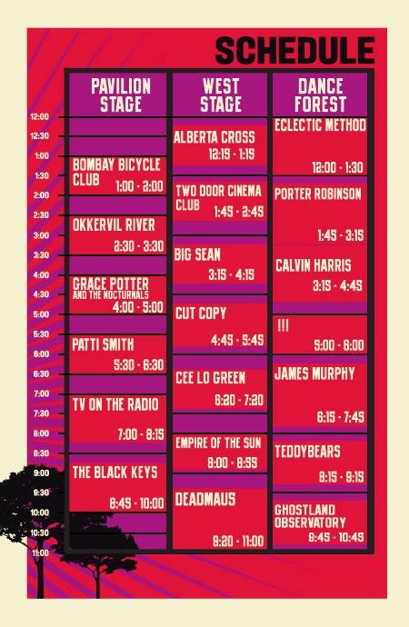 Behold, our Dream Schedule! It’s backwards to confuse you freaky-ass stalkers; you know who you are, and so does my police officer friend, creepy Urban Planner Guy. TVD Ladies myself, Kelly Kettering, and Jenn Bress will most likely be seeing the bands below, especially if we can invent teleportation in the next twenty-four hours and eschew all alcohol (haHA!), food, and bathroom breaks.