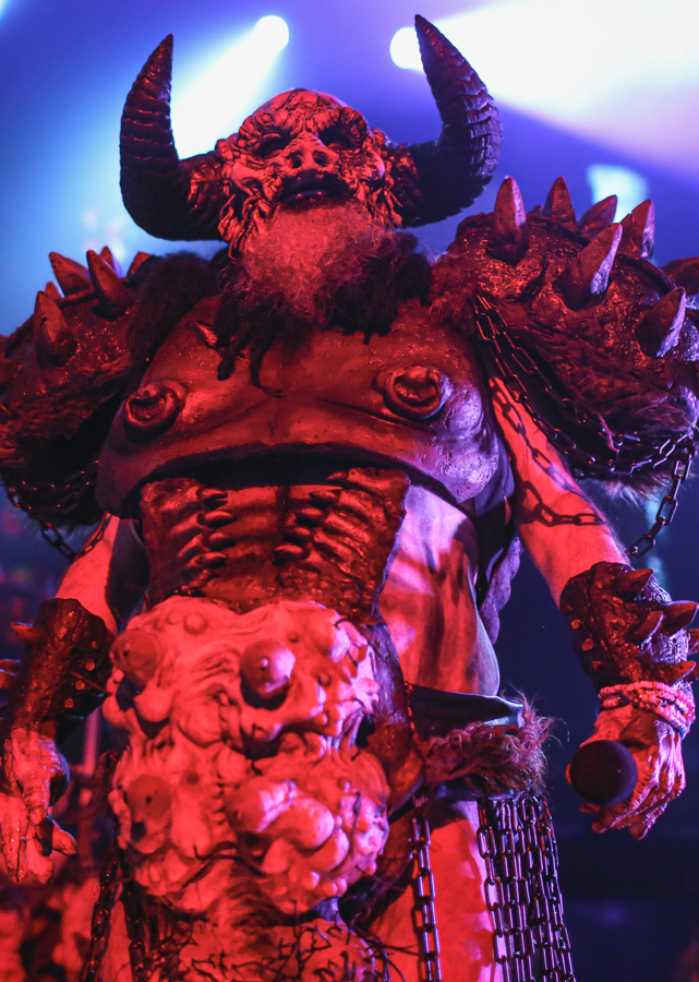 The controlled chaos of GWAR now begins . . . with one of their cohorts taking the stage and setting the plot, the band led by vocalist Blöthar the Berserker, guitarists Balsac the Jaws of Death and Grodius Maximus, Beefcake the Mighty on bass, and Jizmak da Gusha on drums launched into the anthem “Fuck this Place” and before you could figure out what was going on, blood was shooting everywhere. There is just disorder across the stage.