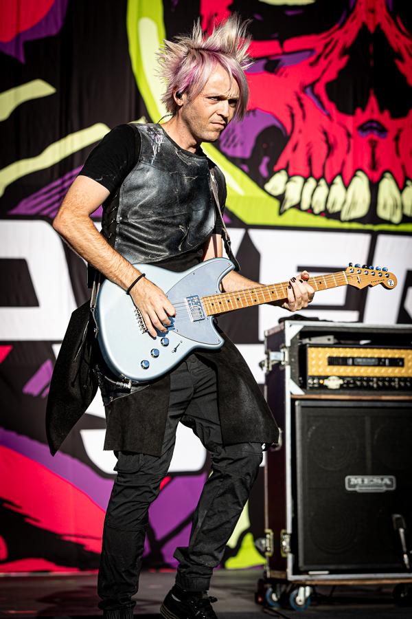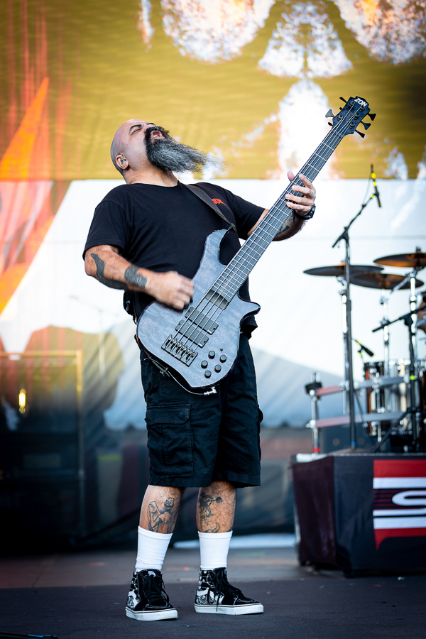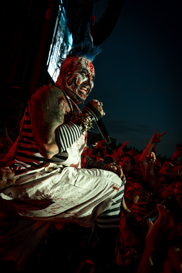 Now on to Mudvayne. Founded in 1996, this amazing band have had many highs and lows over a 25 year career and recently reformed after a 10+ year hiatus. Original members Chad Gray (vocals), Greg Tribbett (guitars), Matthew McDonough (drums), and Ryan Martinie (bass) ripped through a 12-song set that made new and old fans alike smile like they just won the lottery. In typical Chad fashion, he immediately jumped off the stage and leaned into a packed general admission pit during “Under My Skin”—allowing fans to join in his “Chadness” (I mean madness). For such a long hiatus, this band was sonically amazing from “Dig” all the way through to my favorite Mudvayne song, “Happy?” Can’t wait to see them again soon, they are that good.
