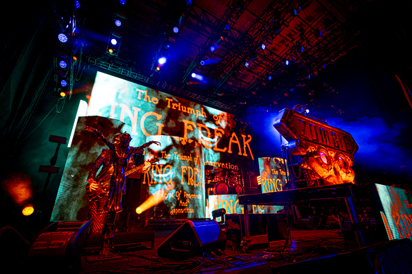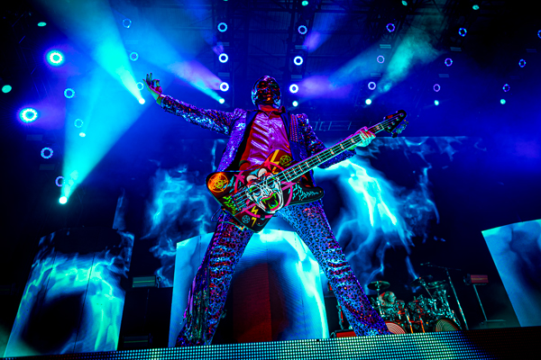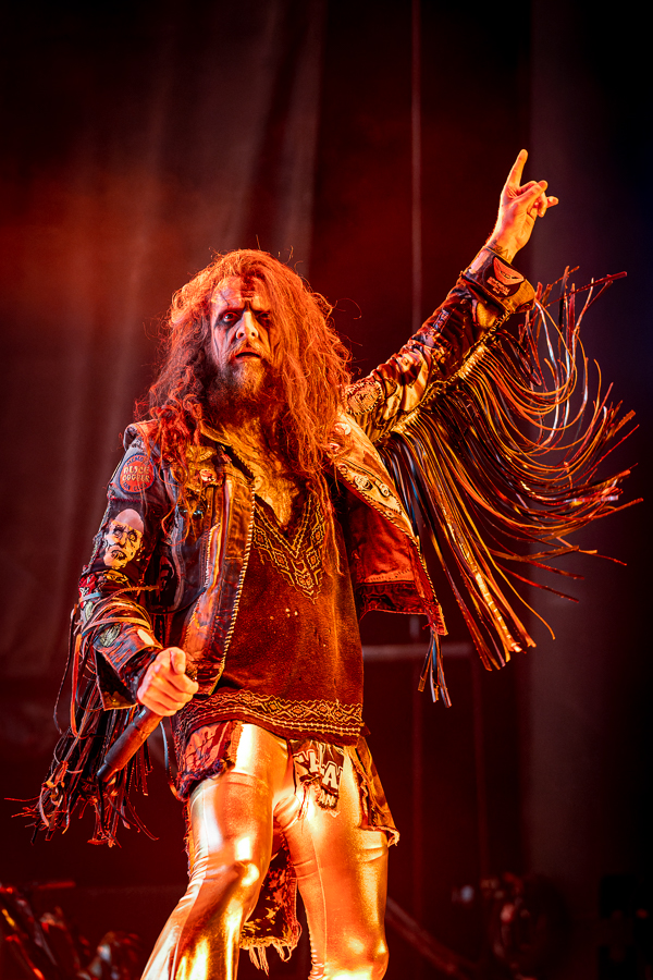 And now on to the main attraction, Mr. Rob Zombie. I can honestly say there are very few performers like him walking the planet today, and his live shows are out of this world (to say the very least). Along with John 5 (guitar), Piggy D (bass), and Ginger Fish (drums), Zombie blazed through a 17-song set under a starlit night in Irvine, and the band pulled no punches for the faithful. Whether you were down with “Superbeast,” “House of 1000 Corpses,” or crowd favorite “Dragula,” there was something for everyone. And when many performers of this era tend to “phone in” their live shows, Rob Zombie and company seemed superhuman with nearly two-hours of non-stop, “crank it to 11” energy all night long. Catch “Freaks on Parade” if you can when the tour rolls through your town. It’s one you won’t want to miss.