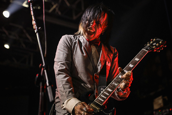The back of the stage was filled with video panels and fake snow fell on the stage through many of the songs. Campos and Fukuda would switch sides of the stage often headbanging intensely. Drummer Ken Jay in his Peter Criss makeup held down the pounding rhythms while Xer0 nailed the vocals and the moves. Sonically Xer0 is almost a clone of Wayne Static’s voice—it’s scary how much he sounds like him, and visually he is wearing a mask, but has the stage moves and guitar playing down pat as well. The way the show is done totally puts you in the same zone, same vibe, as a Static-X show back in the early 2000s.