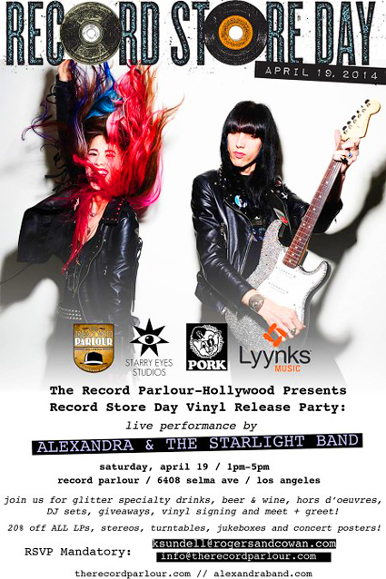 Alexandra & The Starlight Band will be playing a private party this Saturday, 4/19 to celebrate Record Store Day at the Record Parlour in Hollywood, CA from 1-5pm!