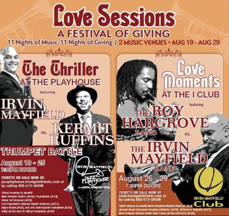 The event kicks off tomorrow night at the trumpeter’s flagship nightclub, Irvin Mayfield’s Jazz Playhouse in the Royal Sonesta Hotel. It concludes next weekend at his new business, Irvin Mayfield’s I Club in the J.W. Marriott Hotel.