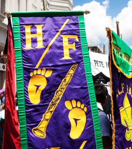 Several musical ensembles were gathered outside the church, some hovered in the shade waiting to join the procession, including Fountain’s own Half Fast Walking Club band, the Storyville Stompers, the Gentilly Brass Band, and the clarinet section of Warren Easton High School—Fountain’s erstwhile alma mater had he not quit high school for the “Conservatory of Bourbon Street” at the age of 16.