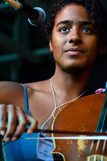 Two members of the Carolina Chocolate Drops, the critically acclaimed African-American string band, are playing separately today. If last year is any indication, Leyla McCalla (pictured at top) and Rhiannon Giddens will both put on engaging performances and may very well collaborate. Last year, Giddens joined McCalla on her set.
