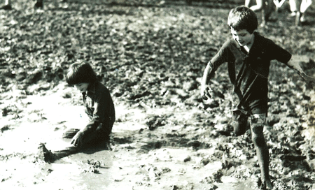 Photo: Scott playing in the mud at Jazz Fest, circa 1981.