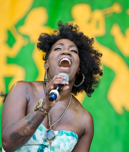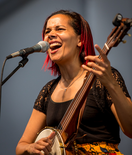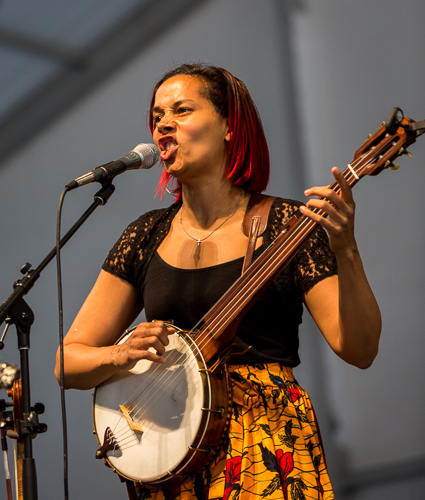 Funk was just one of the many styles on stage at the Jazz Fest. Rhiannon Giddens (pictured above and below) made her second appearance as a solo artist. Her latest recording puts slave narratives from centuries past into a mix of string-based musical styles. Her siren voice and chilling lyrics had some in the tent weeping.