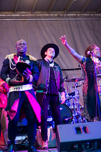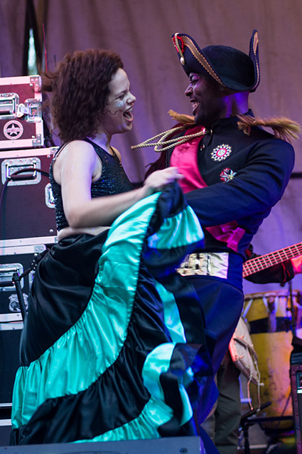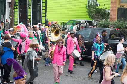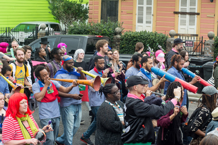 PHOTOS: DENNIS McDONOUGH | When Win Butler and Régine Chassagne, the married couple who front Arcade Fire, teamed up with Ben Jaffe (all pictured above) and his crew at Preservation Hall to create a new Mardi Gras organization focused on the connections between Haiti and New Orleans, most observers knew it would be something special. On Tuesday afternoon (2/6) the debut of the Krewe du Kanaval was a rousing success, joining two copacetic cultural traditions into a synergistic carnival.