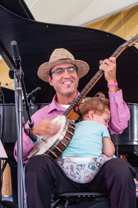 Also part of the big band was guitarist and banjo player Seva Venet (and one musically inclined infant). A large cast of musicians including drummer Simon Lott, saxophonists Ashlin Parker and Wes “Warmdaddy” Anderson, as well as trombonist Michael Watson joined him.