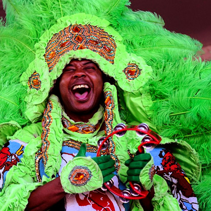 The Mardi Gras Indian funk band is following in the big footsteps of legendary stage acts such as Big Chief Bo Dollis and Wild Magnolias and Big Chief Monk Boudreaux by fusing the ancient call and response of the black Indians of New Orleans with blues and funk.