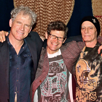 5 PM is the main act. DVS (pictured at top) is Mike Dillon, Johnny Vidacovich, and James Singleton. I heard them play together at the Maple Leaf Bar some weeks back and was blown away. Everyone around town knows the rhythm section and Dillon is carving out a nice niche for himself. Together, these three just killed. You can download four of their songs free here, but seriously, buy the album.