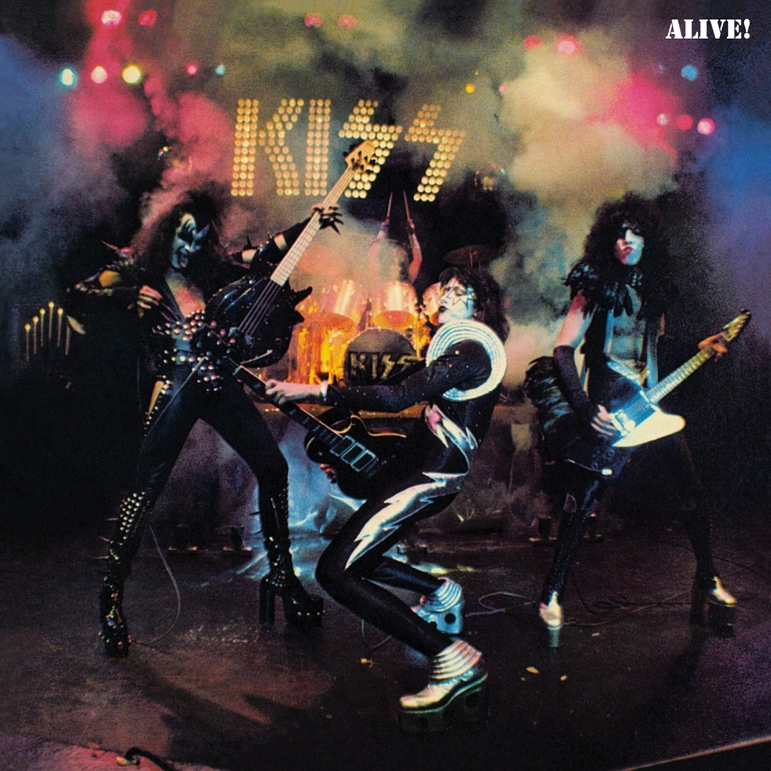 And THEE DEFINITIVE Kiss product is of course 1975’s Alive!, which in the great seventies live el pee tradition is a twofer and as such probably one LP too long, but who’s counting? Think of it as a double Happy Meal! As a graduate of the Class of ’76 I couldn’t escape this baby, everybody owned a copy on 8-track and played it nonstop in their cars as they rolled down the main drag of Littlestown, Pennsylvania (which was so small it didn’t EVEN HAVE a McDonald’s) looking for girls WHO DIDN’T EXIST, that is when they weren’t playing Frampton Comes Alive! (which in the great seventies live tradition was a double album as well).