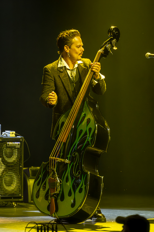 Taking the stage promptly at 8:30PM, Setzer introduced themselves as the “best rockabilly band on the block” before tearing into “Rock Boys Rock” off of his 2023 release, The Devil Always Collects. Flanked by JC Larios on drums and Chris D’Rozario on the standup bass, it was clear that Brian hasn’t missed a beat over the years, making that Gretsch guitar sing as the rest of the band held down the rhythm section.