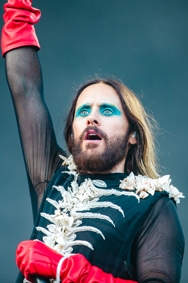 7:21PM: This is my first time witnessing the extravaganza of 30 Second to Mars in person and I’m taking it all in. Jared Leto has just leapt from the top of the Bud Light stage down to the crowd, where band flags wave and fans look on in amazement. It dawns on me that I’m at the church of the Leto brothers (Shannon is on drums) and, from what I can gather, they have quite a few members.