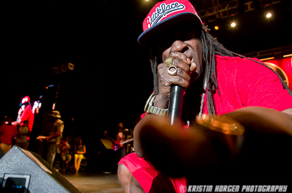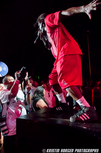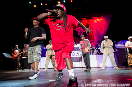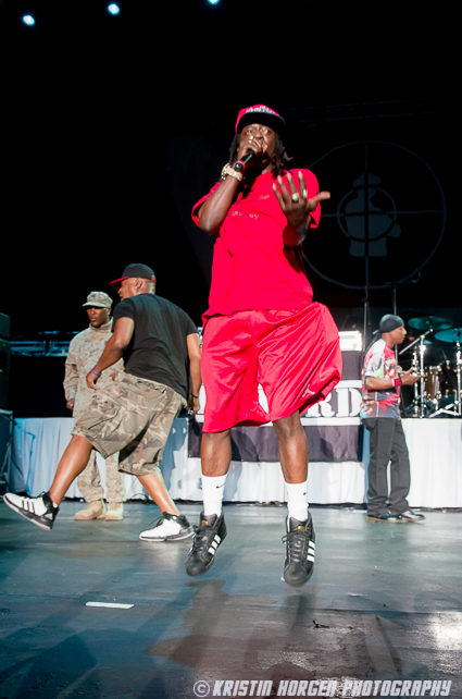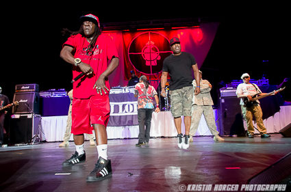 There’s so much happening onstage that it’s hard to know where to look. The S1Ws moving in unison, posing militaristically and periodically doing push-ups, DJ Lord spinning from on high, live guitar, bass, and drums, Professor Griff prowling the stage with his customary stern glare, Flavor Flav being goofy and wild cementing his reputation as the greatest hype man ever, and Chuck D bouncing around, swinging his mic like a bat, all the while commanding the stage like the hip hop preacher the world still greatly needs. At one point he reminded the crowd that Pennsylvania is spending more money on prisons than education. Angry boos followed.