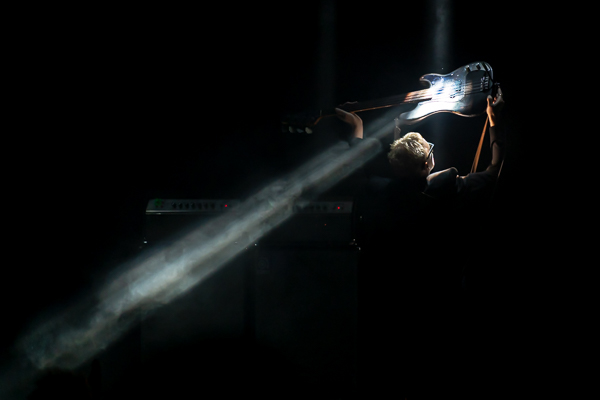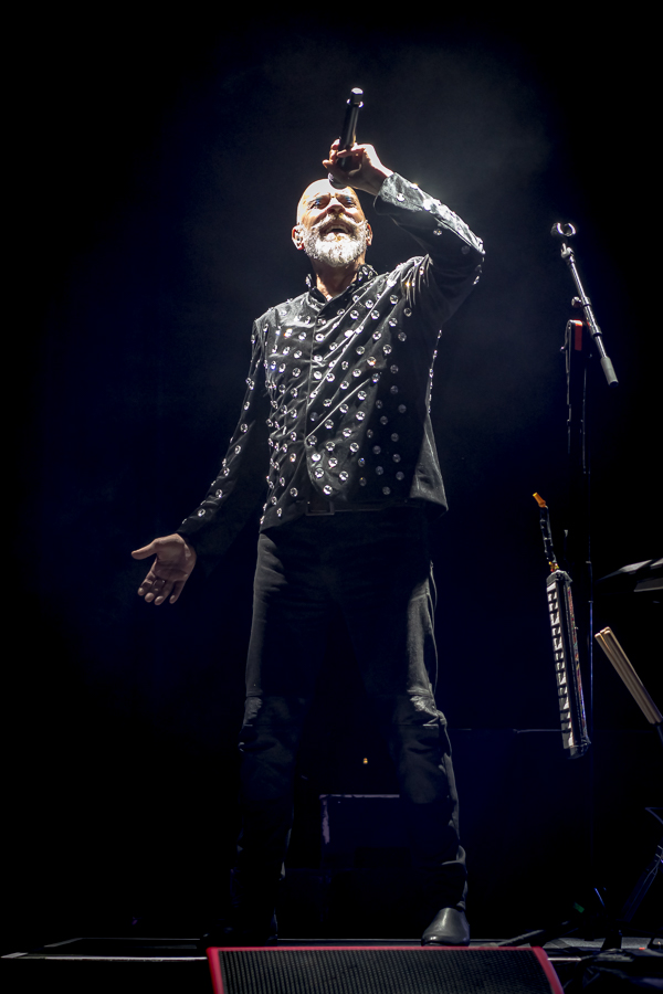 Taking the stage a hair past 9PM, the original four piece took the stage and launched right into “Rosegarden Funeral of Sores,” the band stepping in and out of the shadows as the bass line dirged on as Peter Murphy’s vocals pierced through the din. A commanding presence on stage, Murphy worked the crowd like a pro, engaging the front row directly without sacrificing the carefully curated vibe.
