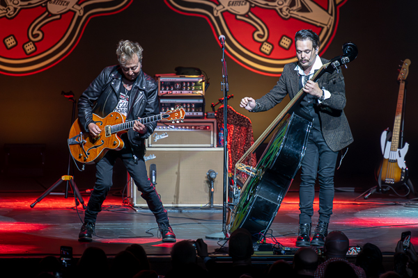 Taking the stage promptly at 8:30PM, Setzer introduced themselves as the “best rockabilly band on the block” before tearing into “Rock Boys Rock” off of his 2023 release, The Devil Always Collects. Flanked by JC Larios on drums and Chris D’Rozario on the standup bass, it was clear that Brian hasn’t missed a beat over the years, making that Gretsch guitar sing as the rest of the band held down the rhythm section.