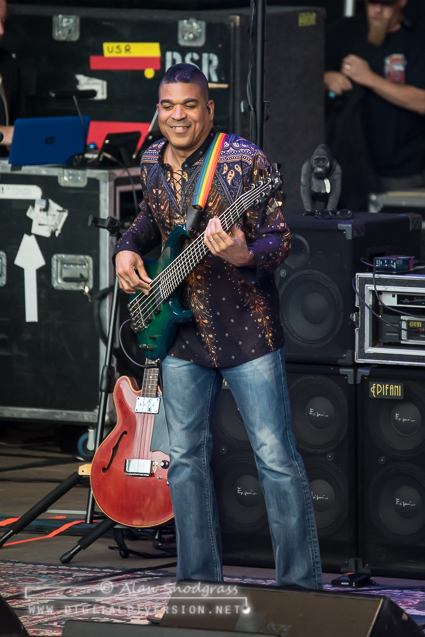 While Mayer and Weir traded vocal duties and guitar licks, the “rhythm devils” stoically held down the beat behind massive amounts of percussion equipment and the whole amphitheater settled into a patient groove as the sun set behind the lawn before the first set wrapped with an enthusiastically-received “Franklin’s Tower” that had nearly every person in the venue on their feet.
