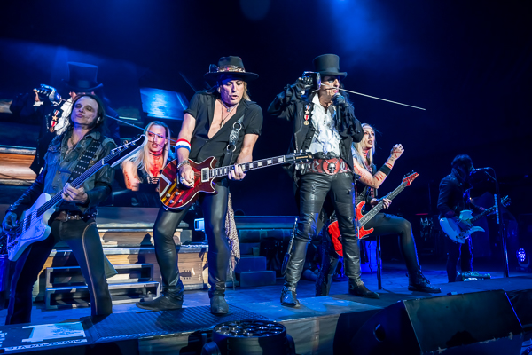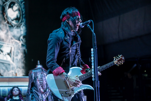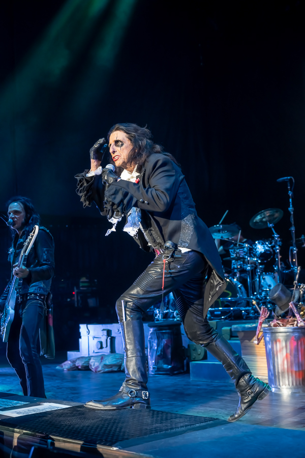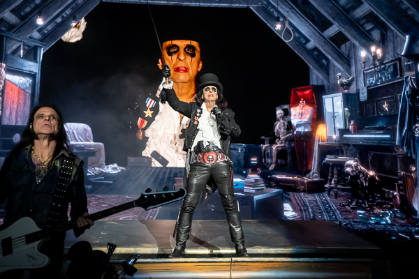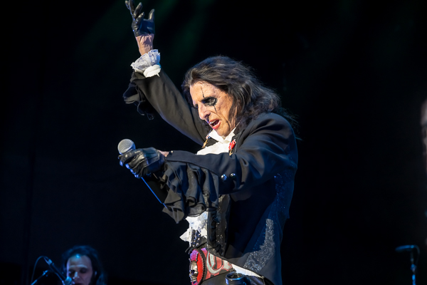 A quick change-over and it was time for original shock rocker Alice Cooper to take the stage. A black curtain dropped to reveal Alice’s Attic as he emerged from fog at the back of the stage in his signature top hat and swinging a sword as he made his way to the front of the stage where he joined the rest of his band.