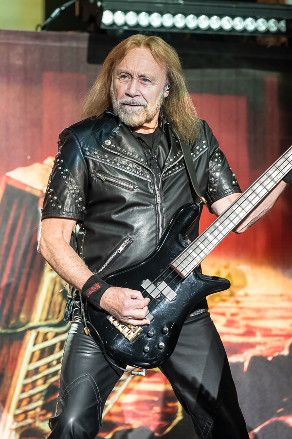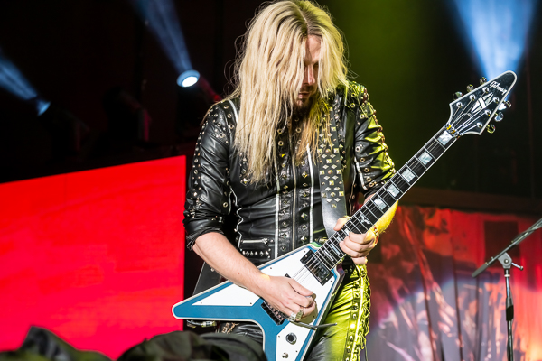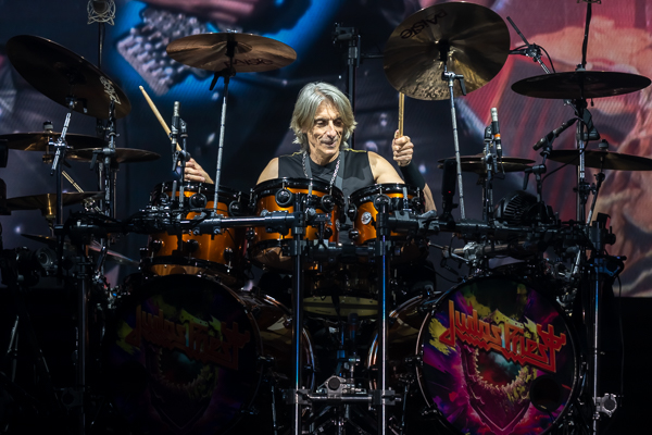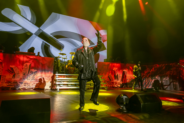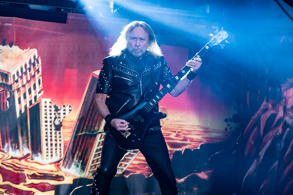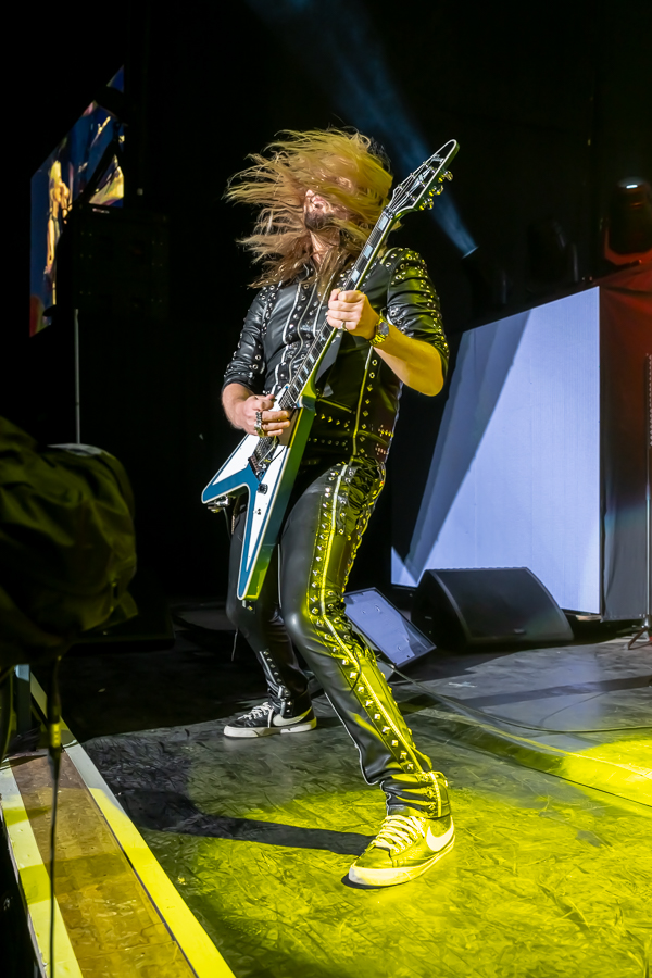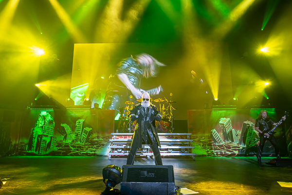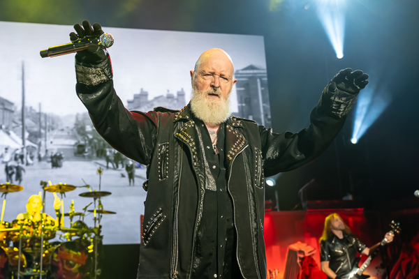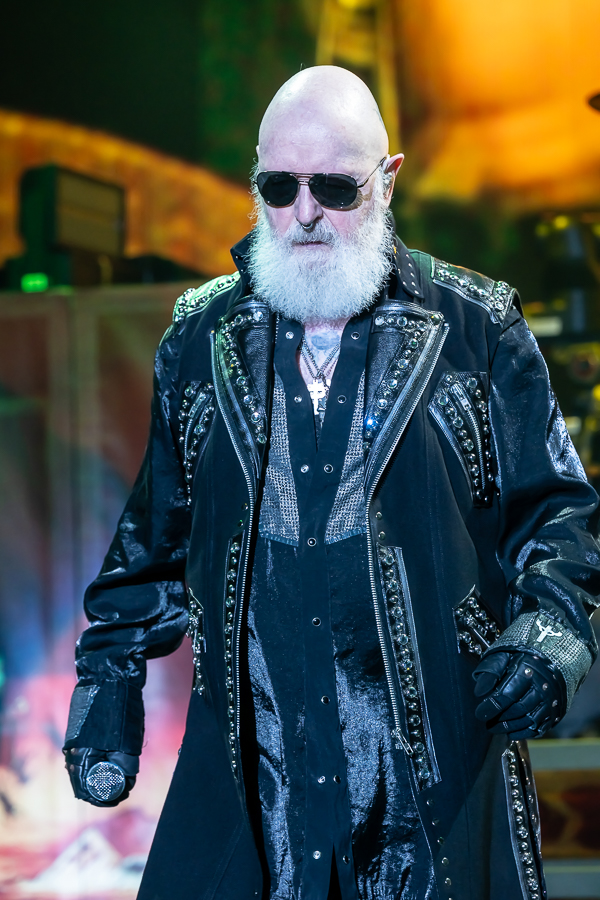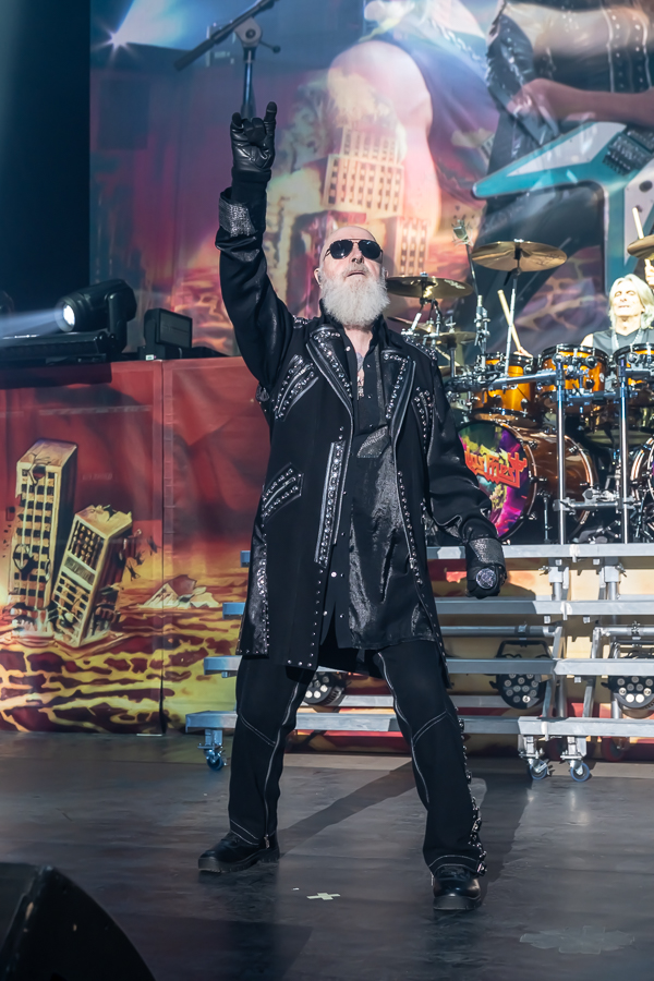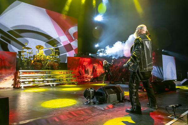 While a few folks called it an evening, there was no denying that the audience was eager for some Priest! As the minutes to their set time ticked down, the entire audience was more than happy to sing along loudly to Black Sabbath’s “War Pigs” before the band finally took the stage through various doors and curtains to “Painkiller” before blasting into their opening number, appropriately “All Guns Blazing” from their 1990 release Painkiller, setting the tone for a celebration of the album’s 35th birthday.