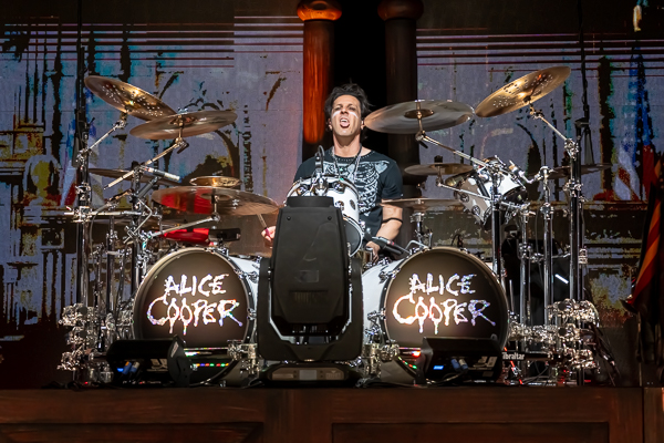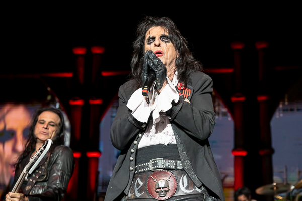Alice Cooper and his band took the stage a few minutes early with Alice slashing through a curtain with a sword … “Trial Set: For Deeds Against Humanity” as the band tore into “Lock Me Up.” From there, “No More Mr. Nice Guy” and “I’m Eighteen” whipped the Concord crowd onto their feet. As expected, Alice was in fine form as, not missing a beat through the numerous costume changes and on stage antics which featured a giant-sized Alice Cooper Frankenstein during “Feed My Frankenstein” and a giant boa constrictor for “Snakebite.”