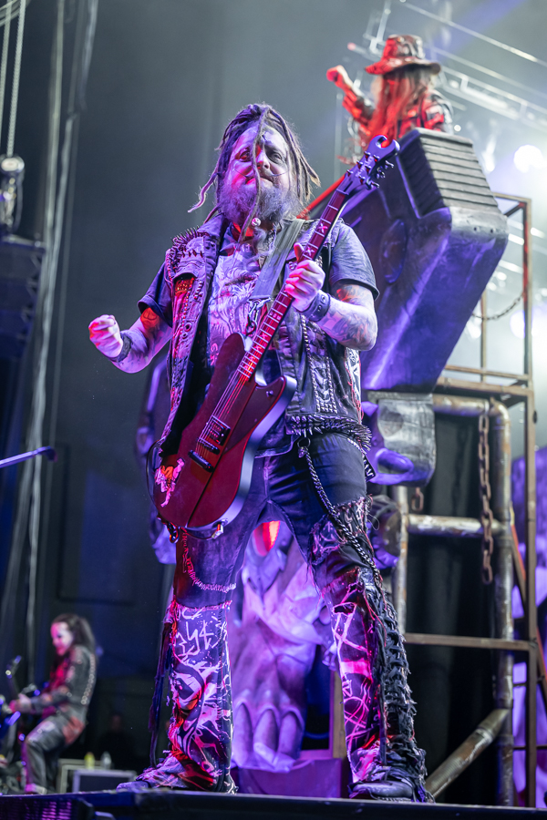 If anyone was up to the challenge of following Alice Cooper it would be the King Freak, Rob Zombie. Kicking the set off atop a giant platform with “Zombie” emblazoned across the top, Rob proceeded to wow the Concord crowd with his ferocious hour and 20 minute set. The blazing LED screens that covered every inch of the stage provided the perfect backdrop for Rob along with Piggy D, Riggs, and Ginger Fish to have some fun as they tore through a career spanning set that paid tribute to Zombie’s horror films along the way.