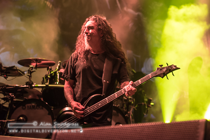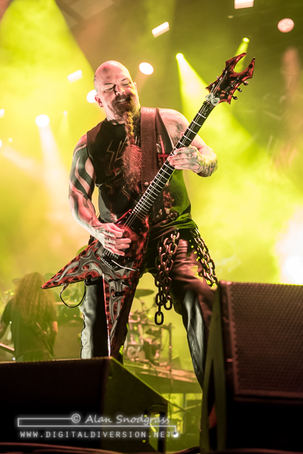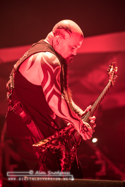 The 90 minute set flew by quickly, appropriately covering a wide swath of favorites from the Slayer catalog so no fan would be left out. For those familiar with last year’s tour, the production will look familiar but no less impressive. A wall of flames flanked drummer Paul Bostaph and flames spewed into the air.