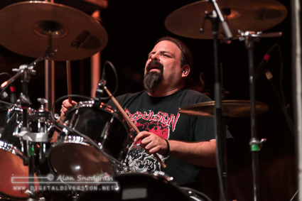 Security scrambled as the floor spun out of control to “Repentless,” barely able to keep up with the crowd surfers … a few slipping through the cracks only to hit the floor hard enough to be heard over the din of Slayer’s “Disciple.” No harm, no foul. A few lumps are not unexpected at a Slayer show and they quickly dusted off and sprinted out to rejoin the pit.